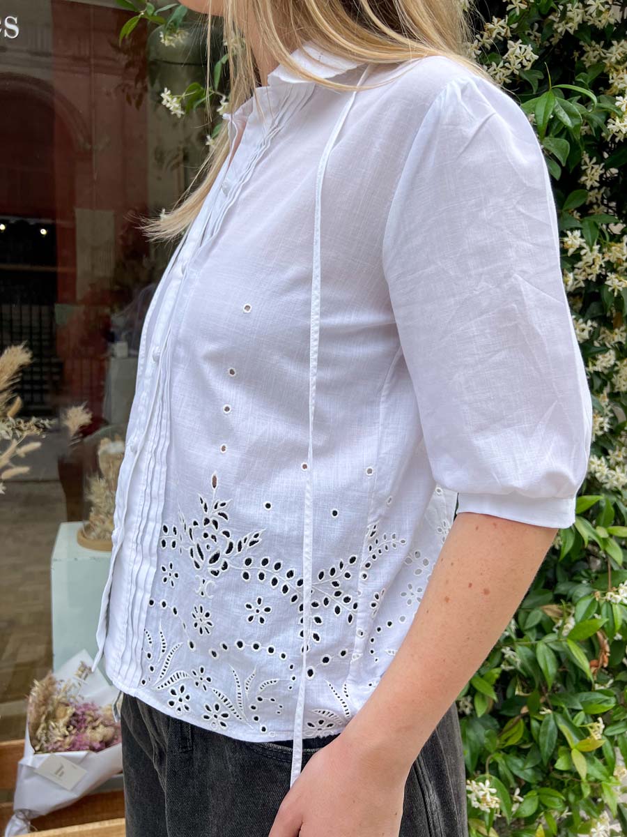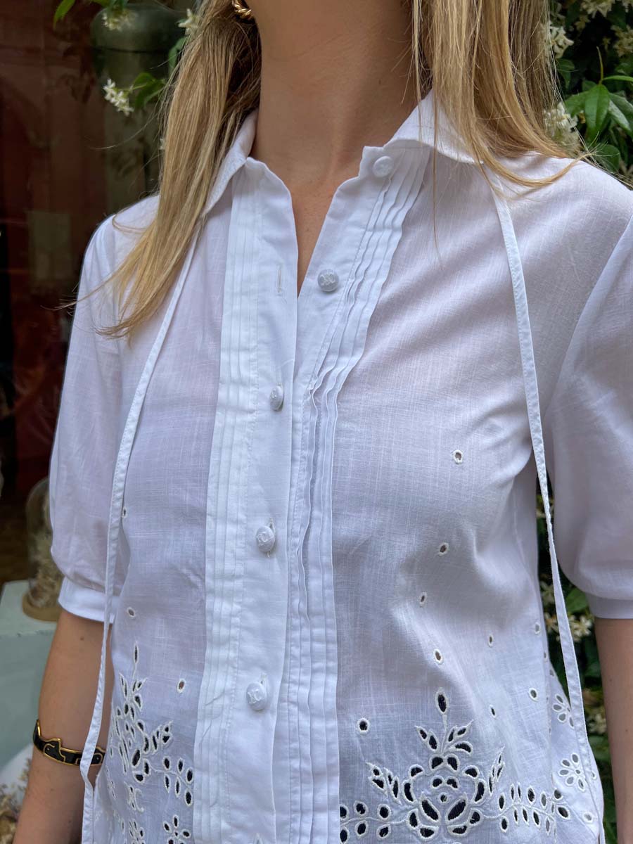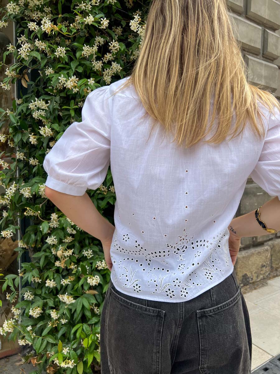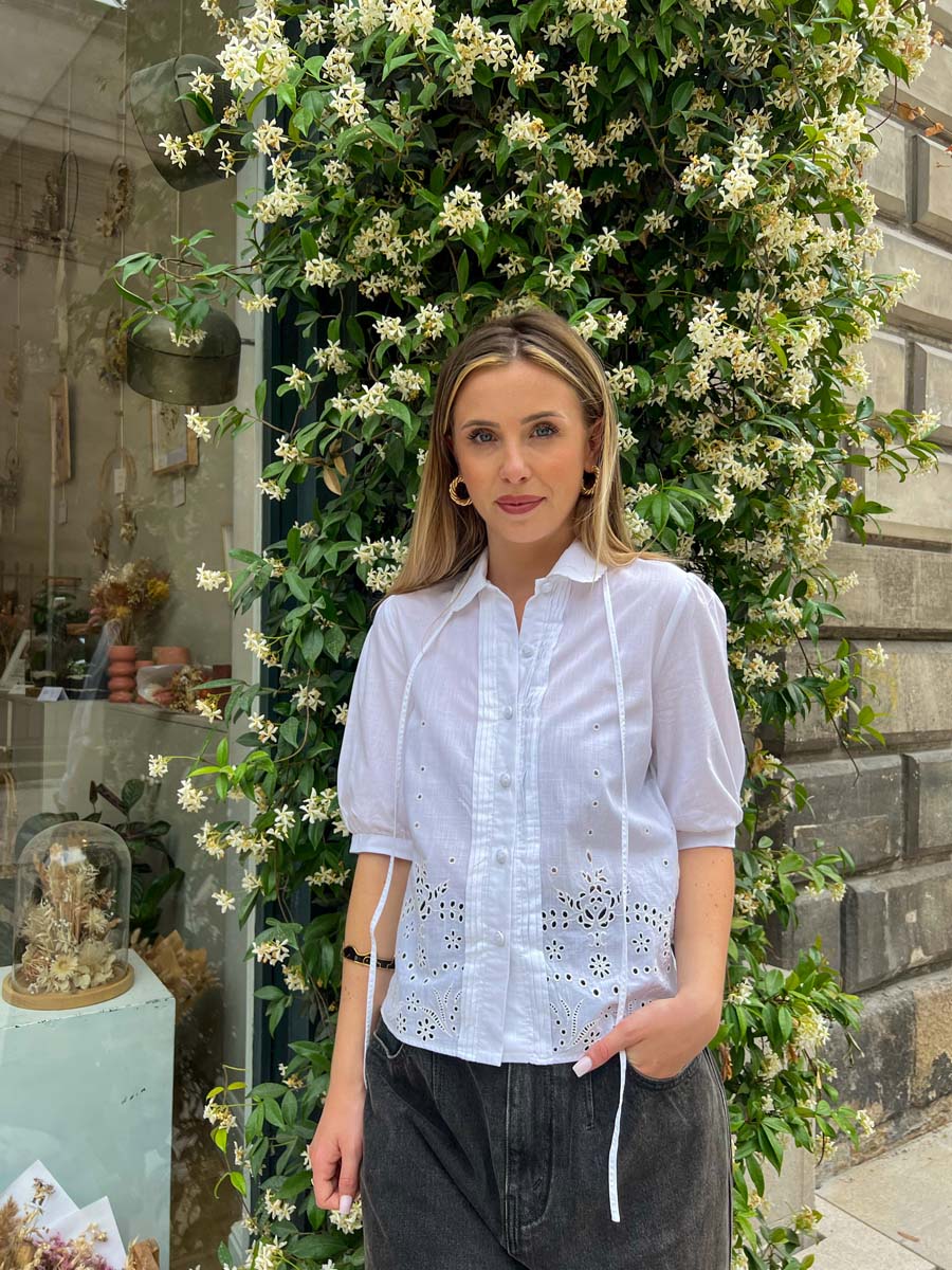 La chemise brodée Celine est fabriquée au Portugal, un pays réputé pour son savoir-faire dans l’industrie textile. La fabrication au Portugal garantit une attention particulière aux détails et une qualité exceptionnelle.